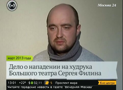 Напомним, вечером 17 января 2013 года неизвестный плеснул кислотой в лицо художественному руководителю балетной труппы Большого театра Сергею Филину. Народный артист России был госпитализирован с ожогами третьей степени.