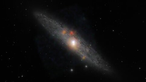 И вот теперь, если вам пройдется побывать на большой обсерватории как раз на горе <...> два американских 10-ти метровых телескопа, вы можете ночью увидеть: вдруг из-под купола мощный лазерный луч поднимается и упирается куда-то в небо. Зачем? Или в какой-нибудь другой обсерватории. Вот это в Чили, большие европейские телескопы, тоже зачем-то телескоп стреляет мощным лазером. Может, это астроном балуется указкой? Хочет ослепить летчиков? Нет, наоборот, там система, которая не позволяет ослеплять летчиков. Она отслеживает все самолеты, которые в приделах видимости появляются, и тут же отключает этот лазер, а то так можно ослепить, мощный лазер. Зачем? А, оказывается, это помогает системе адаптированной оптики. На высоте примерно 90 километров над поверхностью земли, то есть высоко в стратосфере, есть слой воздуха, обогащенный атомами натрия, а они при соответствующем освещении могут ярко светиться - такой желтый свет давать. И у нас этот лазер возбуждает маленькую яркую точку в стратосфере над собой, и телескоп по этой маленькой точке, как по стандартной звезде - ее называют искусственная звезда - наводит резкость своей адаптивной оптики, дает им четкое изображение.