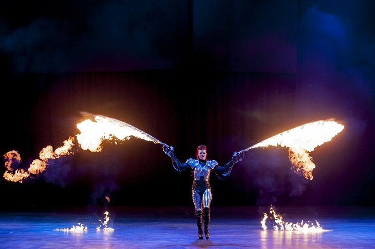 Одним из номеров станет интерактивная гонка, в которой сможет поучаствовать каждый из зрителей. На экранах изобразят интерактивную трассу, поделенную на две части - зеленую и красную. Посетителям на входе раздадут касточки зеленого и красного цвета. Таким образом, каждый из зрителей движением рук сможет управлять автомобилем на экране. Разгонять машину можно будет голосом.