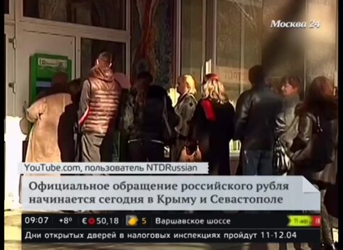 С 24 марта в Крыму и Севастополе начнет хождение рубль, сообщает телеканал "Москва 24".