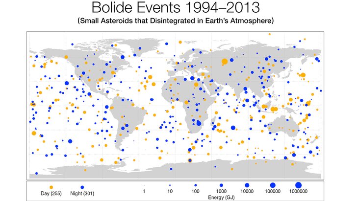 НАСА составило карту астероидов, которые упали на землю за последние 20 лет. Выяснилось, что метеориты являются далеко не редкими гостями на нашей планете.