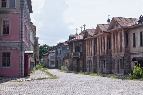 Во всей красе предстает перед виртуальными гостями "Мосфильма" квартал "Старой Москвы" - огромная декорация, построенная для фильма Карена Шахназарова "Всадник по имени Смерть". Здесь можно увидеть усадьбу, аптеку, пекарню, церкви, парикмахерский салон и другие здания, которые воссоздают не только архитектуру, но и атмосферу Москвы конца XIX-начала XX века. Эти же декорации использовались во время съемок "Белого тигра", "Анны Карениной" и других картин.