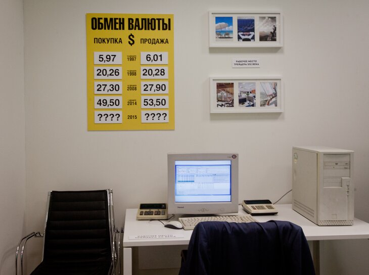 В туалетах – каким странным или смешным это бы ни казалось – ЖКЧИ посвящает своих гостей в историю кризисов 1991, 1998, 2008, 2014 годов. А коридор музея планомерно погружает в историю финансов (с 1945 года до наших дней).