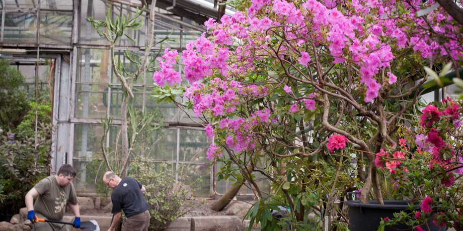 Оранжерея Ботанического сада была построена в 1953 году, ее площадь составляет 5,5 тысячи квадратных метров. Здесь выращиваются более 6,5 тысячи видов растений из тропических и субтропических областей земного шара. В оранжерее воссоздан климат с необходимыми температурами, которые поддерживаются круглый год.В тропическом отделении температура в холодное время года составляет около 25 градусов, летом она повышается. Кроме того, создана 100-процентная влажность для имитации эффекта тропических дождей. В субтропическом отделении температура зимой может понижаться до 10 градусов тепла.