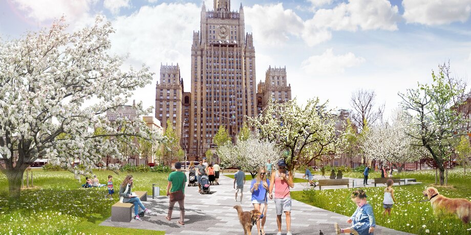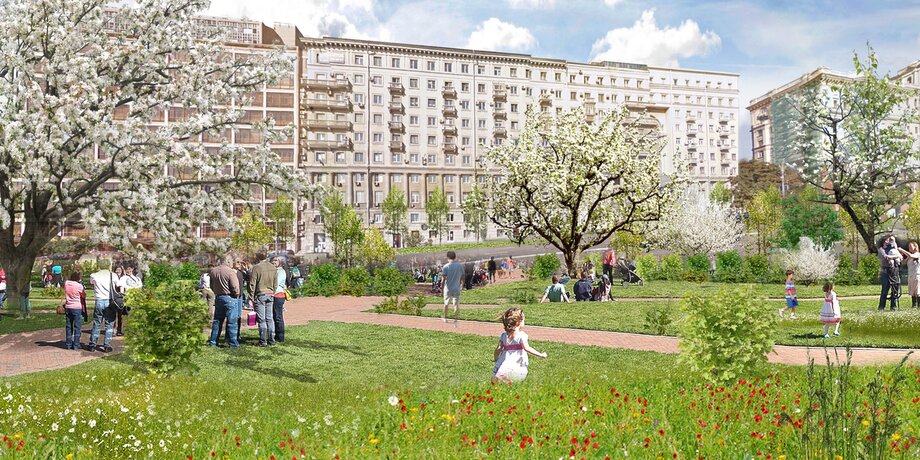 Так, на месте тоннеля под Новым Арбатом хотят обустроить пешеходный променад с велодорожками, детской площадкой и спортивной зоной. На месте котлована с раскопками Белокаменной стены между Чистопрудным и Покровским бульварами в КБ "Стрелка" предлагают создать археологический парк. При этом проект предусматривает открытие доступа к раскопкам.