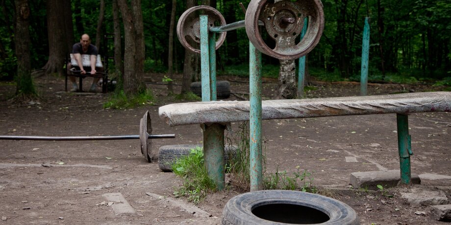 Я знаю эту площадку больше 18 лет и это был мой первый тренажерный зал. Помню, что когда я занимался зимой, ладони примерзали к штанге, а после дождя ноги утопали в грязи. Бывало и так, что во время подхода тебя начинал кусать комар, а ты терпеливо заканчивал движение и только потом убивал ненавистное насекомое. Мы часто спаринговали с мужиками и отрабатывали удары на этих самых покрышках. У нас не было денег на фитнес-клубы, которые по тем временам были достаточно дорогими, и мы занимались здесь и добивались хороших результатов.