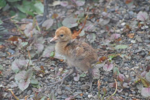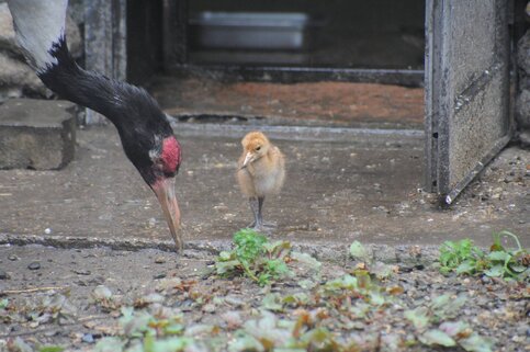 Птенца черношейного журавля можно увидеть на экспозиции – рядом с Домом птиц на "старой" территории.
