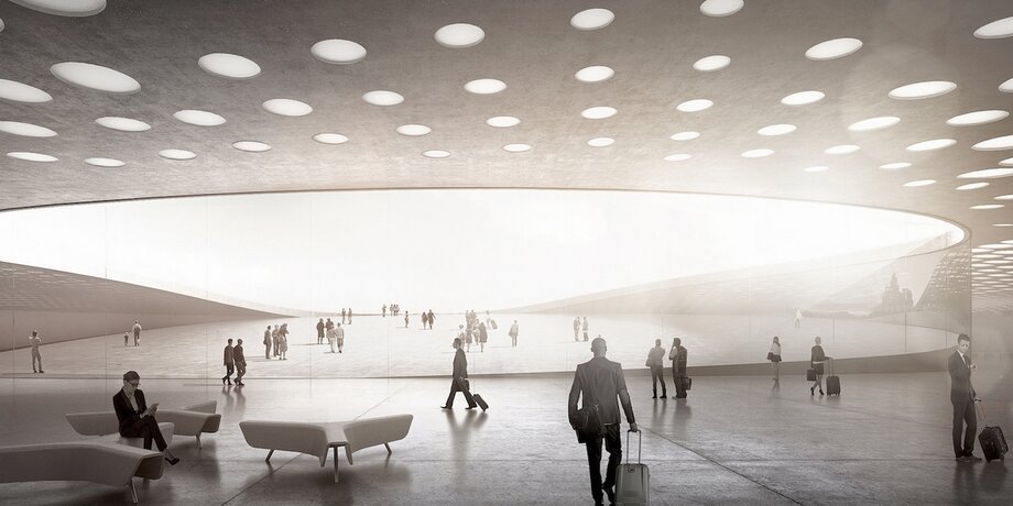 На площади появится парк с пешеходными и велосипедными маршрутами, прилегающими к Москве-реке и центральным улицам города. Под землей создадут шестиуровневый центр. На первом уровне будет организован логистический узел, который свяжет между собой новый терминал аэроэкспресса, гостиницу, метро и подземную часть вокзала.