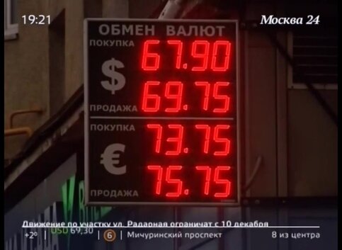 Официальные курсы на 9 декабря составили 69 рублей 30 копеек за доллар и 75,31 рубля за евро. На фоне новости о стоимости нефти доллар на бирже подорожал почти до 70 рублей, евро – до 76.