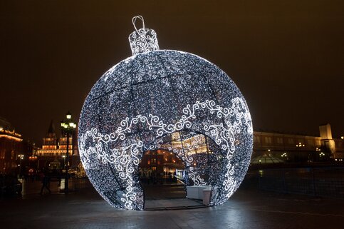 По его словам, игрушка на шесть метров больше новогоднего шара, который был установлен на площади в прошлом году. Ее высота составляет 17 метров. "Вся конструкция весит 26 тонн и на ней размещается 23 тысяч светодиодных светильников, которые позволяют увидеть световое шоу, как снаружи конструкции, так и внутри", – добавил глава департамента торговли.