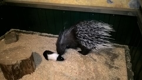 "Не было предела ее возмущению. Иглы дыбом, треск, фырканье, и это только часть всех проявленных эмоций. Потом, немного поразмыслив, Мотя самым серьезным образом решила все-таки выделить ему один угол, отгородив его одним из имеющихся бревен, и просто загнала его туда", – сообщили в парке.