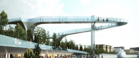 Мост позволит связать парк с рекой, а также будет служить обзорной точкой, с которой откроются виды на Кремль, парк и центральные набережные. Прозрачный лифт соединит мост с Москворецкой набережной.