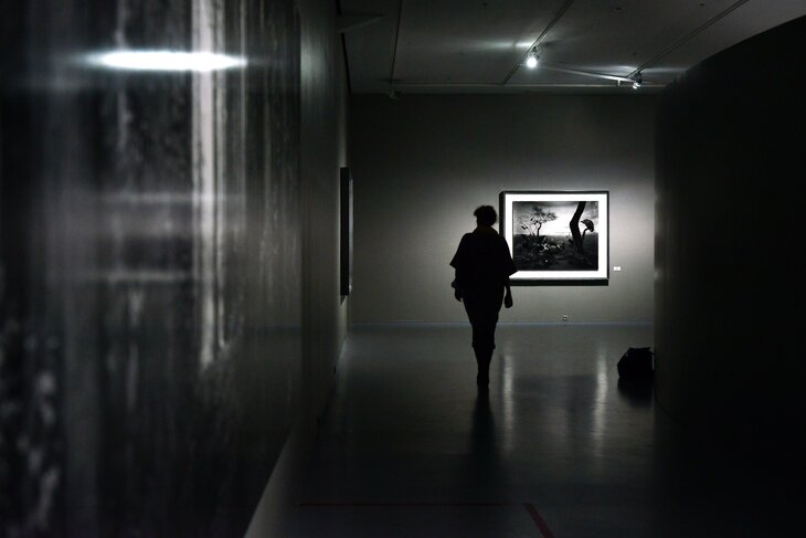В Мультимедиа Арт Музее открылась выставка японского фотографа Хироси Сугимото "Прошлое и настоящее в трех частях". В экспозиции представлены три монохромных серии: "Морские пейзажи", "Диорамы" и "Театры". Художник рассказал о путешествии в Россию, любви к Малевичу и своем восприятии времени.