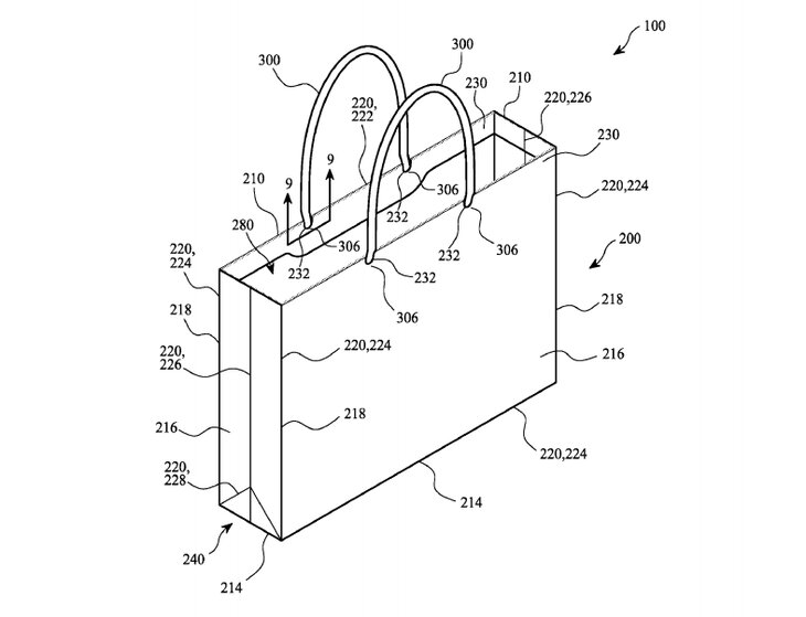 Если целесообразность футболки с дисплеем еще как-то можно объяснить, то решение компании Apple заняться выпуском бумажных пакетов пока вызывает лишь вопросы. Патентная заявка на данное "изобретение" уже подана компанией. Судя по описанию пакета, нам не приходится надеяться на то, что Apple данным продуктом перевернет игру на рынке приспособлений для переноски предметов - это обыкновенный бумажный пакет с ручками.