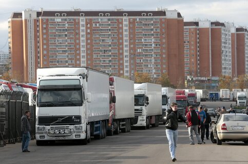 Фуры с овощами около овощебазы в Бирюлеве. Фото: ИТАР-ТАСС