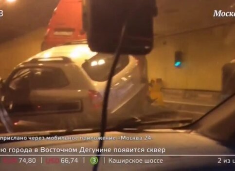 Микроавтобус и внедорожник столкнулись в Лефортовском тоннеле, сообщает телеканал "Москва 24".