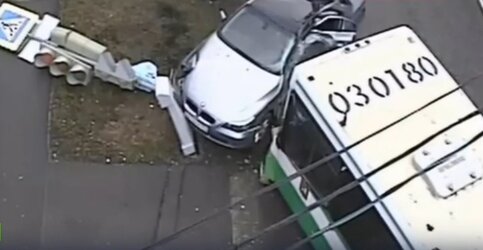 Автобус столкнулся с легковушкой в Москве утром 14 апреля, передает телеканал "Москва 24".