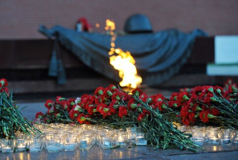 Делегация правительства Москвы возложила венки и цветы к Вечному огню и на Могиле Неизвестного Солдата в Александровском саду.