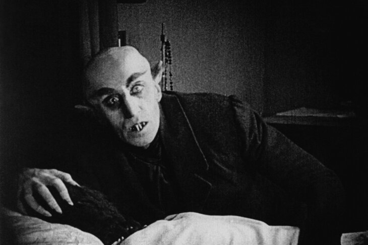 Первый фильм о Дракуле появился в 1922 году. Правда, создатели картины не получили права на использование романа Брэма Стокера и изменили имена и ход сюжета. В немой ленте самый известный вампир в культуре носит имя графа Орлока и выглядит жутковато: лысый череп, сумасшедший взгляд, специфическая походка и кривые зубы-лезвия. Герой упивается кровью, избегает солнечного света и укладывает в гробы несчастных жертв. Это продолжается до тех пор, пока на пути графа не появляется женщина, готовая избавиться от него даже ценой собственной жизни.
