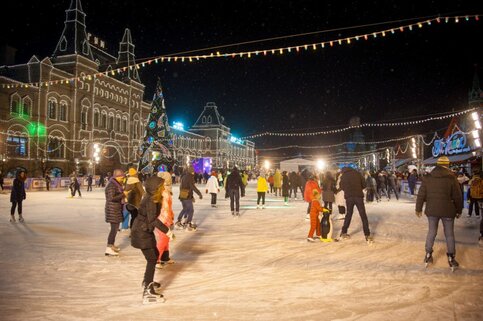 Посетители встретят Новый год под бой курантов на Красной площади, покатаются на коньках в исторических декорациях собора Василия Блаженного и праздничной иллюминации.