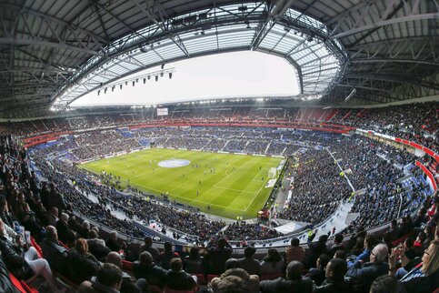 На поле за 15 минут до начала встречи вышли болельщики французского клуба, которые сидели на нижних секторах трибун. Они испугались пиротехники, которую бросали вниз фанаты команды-соперника.