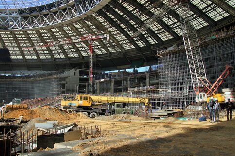 Напомним, реконструкция стадиона "Лужники" ведется в рамках подготовки к чемпионату мира по футболу 2018 года. На стадионе состоятся церемония и матч открытия, один из полуфиналов и финал мирового турнира.