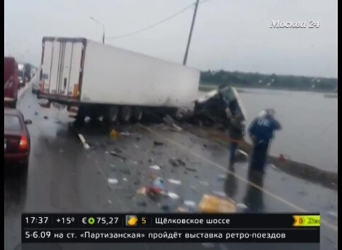 Как выяснилось, ДТП произошло на 122 километре автотрассы. Столкнулись три транспортных средства: бензовоз, фура и автомобиль "Газель". Подробности – в сюжете телеканала "Москва 24".