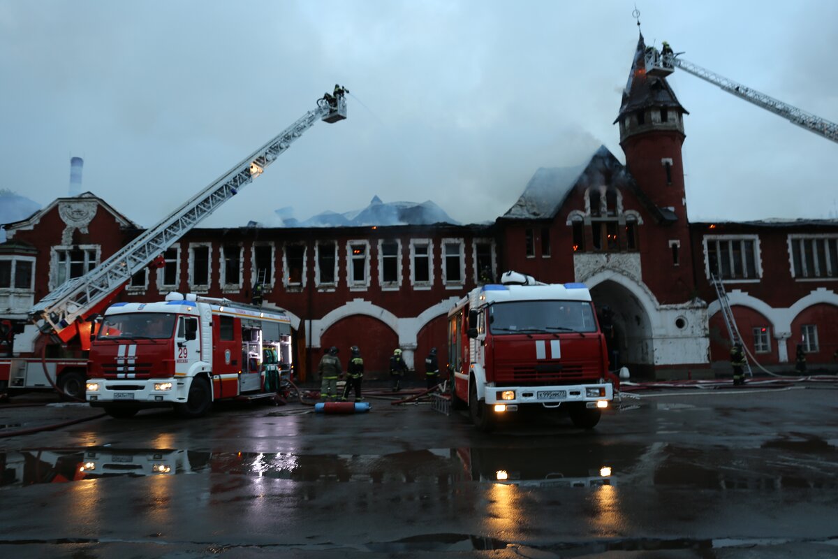 К месту ЧП был вызван пожарный корабль "Евгений Чернышов" для организации подачи воды из Москвы-реки.