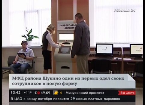Недавно открывшийся МФЦ района Щукино стал одним из первых, кто одел своих сотрудников в новую форму. По словам дизайнеров, при разработки униформы основной акцент делался на создание классического образа работников МФЦ, подчеркивая строгость и деловой стиль сотрудников. В цветовой гамме сделан упор на бежевом цвете, который стал преобладающим и в интерьере самих многофункциональных центров.