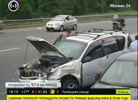 В районе пересечения МКАД с Ярославским шоссе столкнулись пять автомобилей. В результате аварии пострадали два человека – их пришлось доставать из искореженных машин с помощью спецсредств.