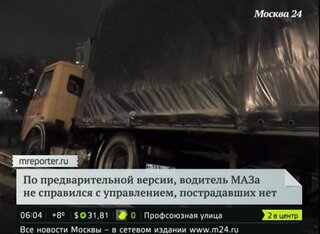 Утром 29 октября на Московской кольцевой автодороге грузовик МАЗ упал в кювет. В результате аварии никто не пострадал.