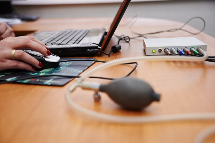 – Машина считывает пульс, давление, показатели органов дыхания и потоотделения. Есть противопоказания: к ним относятся хронические заболевания сердечно-сосудистой системы (например – если в сердце вживлены датчики). При обострении бронхиальной астмы исследование также не проводится, как и при алкогольном или наркотическом опьянении.