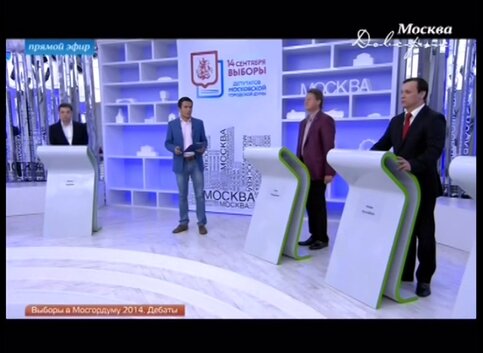 Ведущий: Здравствуйте. В прямом эфире телеканала "Москва Доверие" и радиостанции "Радио Москва дебаты кандидатов в депутаты Московской городской Думы. Напомню, выборы состоятся уже 14 сентября. Эфирное время предоставлено по инициативе столичных властей, чтобы сделать выборы максимально открытыми. Участие в дебатах добровольное.