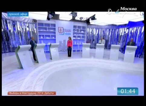Ведущая: Здравствуйте. В прямом эфире телеканала "Москва Доверие" и радиостанции "Радио Москва" – дебаты кандидатов в депутаты Московской городской Думы. Напомню, что сами выборы состоятся в единый день голосования – 14 сентября. Эфирное время предоставлено по инициативе столичных властей, чтобы сделать эти выборы максимально открытыми и прозрачными. Участие в дебатах добровольное.