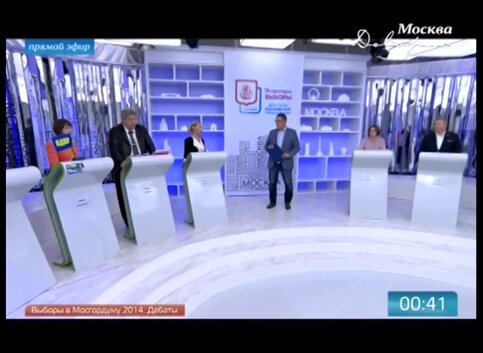 Ведущий: Итак, первый раунд, мы называем его так, у каждого кандидата есть ровно по минуте на приветственное слово. Вы можете свою программу описать, представить себя. Ровно минута есть у каждого кандидата, отсчет времени вы видите.
