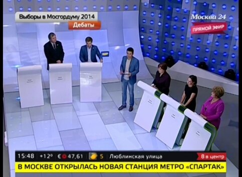 Ведущий: Здравствуйте. В прямом эфире телеканала "Москва 24" и радиостанции "Москва FM" дебаты кандидатов в депутаты Московской городской Думы. Напомню, выборы состоятся 14 сентября. Эфирное время предоставлено по инициативе столичных властей, чтобы сделать выборы максимально открытыми. Участие в дебатах добровольное.