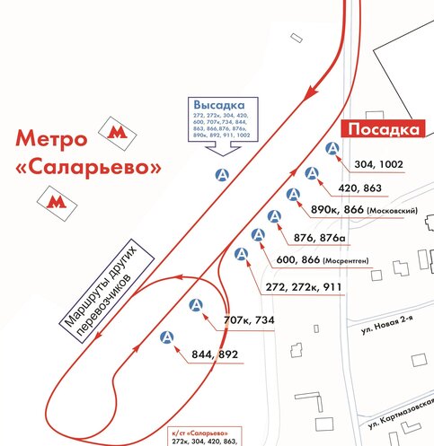 При этом место высадки пассажиров останется прежним – со стороны станции "Саларьево", вблизи северного вестибюля, работающего на вход. Благодаря этой схеме, время пересадки с автобусов на метро по-прежнему будет минимальным.
