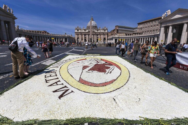 К празднику Дня Святых апостолов Петра и Павла на площади Святого Петра создали цветочную композицию с надписью Mater Misericordiae (Матерь милосердия). В католической, как и в христианской церкви, праздник отмечают 29 июня.