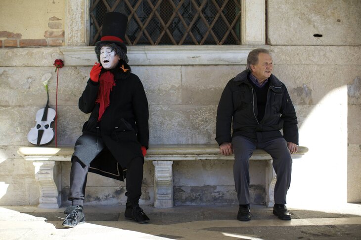 В переулках города можно встретить необычные живые статуи. Мимы разыгрывают свои представления и не обращают внимания на прохожих.
