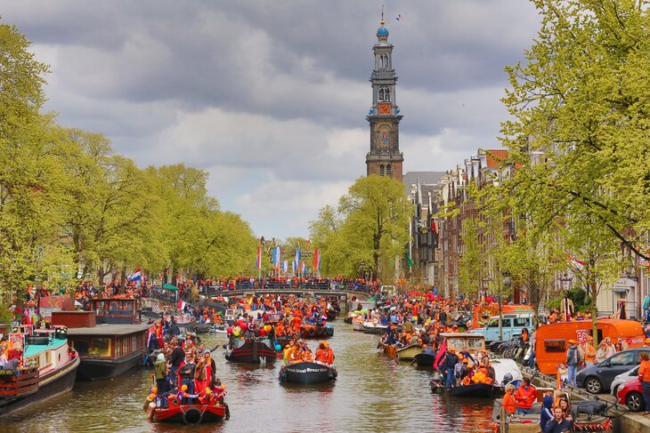 Колоритно отмечают День королевы в Амстердаме. Этот национальный праздник символизирует не только день рождения монарха, но национальное единство и солидарность.