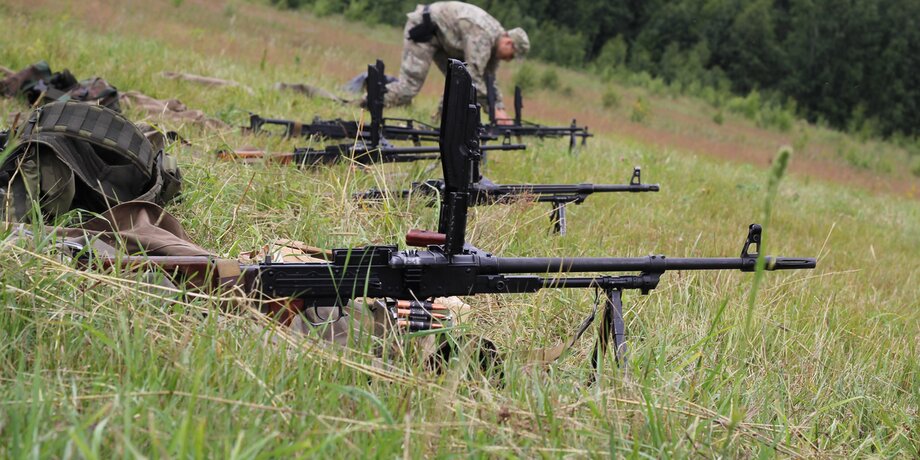 После очередной "сессии" пулеметчики встают, открывают крышку ствольной коробки, снимают ленту и накрывают все это плащ-палаткой (вот для чего они и нужны), после чего идут смотреть на результаты. За промахи бойцы отжимаются прямо около мишеней – заодно и здоровье укрепить.