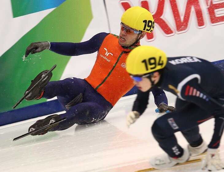 Но не мы одни можем сетовать на невезучесть спортсменов и чрезмерную ломкость инвентаря. Еще "веселее" обстоят дела у корейских шорт-трекистов.