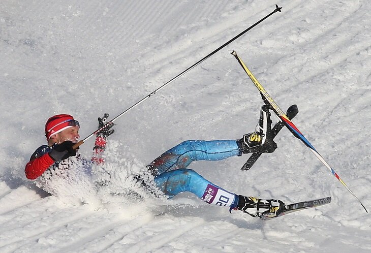 Возьмем, например, нашего выдающегося лыжника Александра Легкова. Сколько было сказано журналистами громких слов о том, что он едва ли не самый главный претендент на золото в скиатлоне, норвежцы будут "порваны", Нортуга разобьют на лыжне, как мальчика и заставят окунуть гудящую голову в первый попавшийся сочинский сугроб… И что? Легков, который неплохо прошел почти всю дистанцию, на заключительном подъеме ломает палку в толчее и автоматически выбывает из числа претендентов на медали.