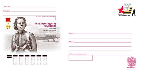 Анна Тимофеева с лета 1941 года служила в 130-й отдельной авиаэскадрилье связи Южного фронта. В 1942 году добилась перевода в штурмовую авиацию в составе 805-го штурмового авиационного полка. Всего на ее счету 277 боевых вылетов. 6 мая 1965 года ей присвоили звание Героя Советского СоюзаРанее "Почта России" выпустила юбилейную марку к 100-летию со дня рождения выдающегося советского физика Александра Прохорова. Марку выпустили тиражом 252 тысячи штук, ее номинал – 21 рубль 50 копеек. На лицевой стороне марки изображен портрет Прохорова на фоне доски с записями семинара 1964 года.