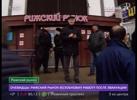 Утром 8 марта поступил анонимный звонок на службу "02" с сообщением, что на Рижском рынке в Москве заложено взрывное устройство. В результате этого были эвакуированы около двух тысяч человек, сообщает ТАСС.