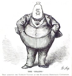 Рука руку мыла, а Твид пер к новым вершинам почище любого паровоза: в 1852 году его избрали членом Палаты представителей от 5-го округа Нью-Йорка, с 1856 он – член городского Совета управляющих, в 1857 – уже сенатор, а заодно третий по величине землевладелец штата и член совета директоров трех крупных компаний. К этому моменту "Босс" и его окружение уже перестали стесняться, сам Твид щеголял на публике галстучной булавкой с брильянтом за 15 000 долларов (около 300 тыс. в сегодняшних "зеленых"), держал в кулаке городской совет, судей и почти всю прессу… кроме "Харперс" и The New York Times. Вот тут-то он и попал Насту на карандаш.
