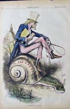 Вся эта история повлияла и на дальнейшую судьбу самого Наста. Расследование против "Босса" Твида инициировал его же товарищ по партии, губернатор штата Нью-Йорк Сэмюэль Тилден. Демократы начали бешенным темпом набирать очки накануне президентской гонки, в то время как республиканцы, сидевшие у руля с 1861 года все больше ассоциировались с непотизмом и коррупцией. Тилден очевидно выигрывал у республиканца Хейса, но тут вступил в действие известный механизм демократии по-американски: "неважно как вы голосуете, важно как голосуют выборщики". Выборщики отдали голоса Хейсу, что привело к политическому кризису 1876 года, когда еще сохранявшему полномочия Улиссу Гранту пришлось даже вводить в отдельные штаты войска. Юг был готов на новое восстание под лозунгом "Тилден или кровь!", а кое-где уже разворачивали траченные молью знамена Конфедерации.