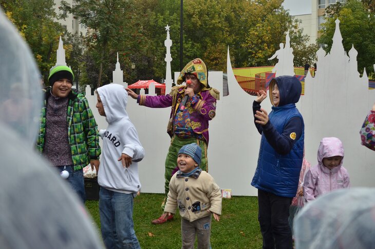 Для детей была подготовлена отдельная программа. "Небольшой театр" Руслана Вольфсона показал детям и родителям спектакль "Колобок". Знакомые с детства персонажи предстали в виде плоских фигур, а благодаря магнитам они двигались будто бы сами по себе. Этот спектакль Вольфсон придумал для своих детей, однако "вышел с ним" на большую аудиторию. Маленькие гости фестиваля также смогли принять участие в конкурсах на знание крылатых фраз и сказок. Клоуны задавали вопросы, а каждому правильно ответившему малышу вручали палочку. Те, кто набрал больше всего палочек, получили призы.