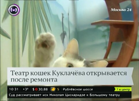 12 апреля после ремонта для посетителей открывается Театр кошек Куклачева. Артисты готовят сразу три новых представления – "Лес чудес", "Клоуны, кошки и любовь" и танцевальный спектакль "Люди и кошки".