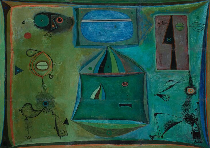 Еще один пример советского абстракционизма "второй волны". После авангарда 1920-х линия абстрактного искусства почти на 40 лет прервалась. А в 1960-е годы вырвалась на поверхность с новой силой. Даже название работы Янкилевского связывает его "Композицию" с живописью Василия Кандинского.